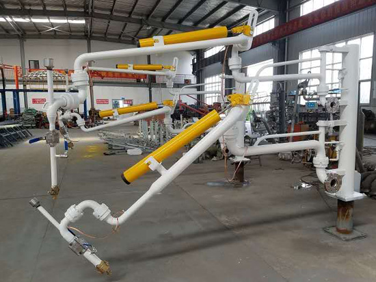 鶴管的安裝方法:發油臺與鶴管連接處配有相應的標準法蘭,并保證基礎法蘭牢固可靠,法蘭盤距地面高度為2.1~2.2米,鶴管倒裝時法蘭盤距地面高度為2.7~2.8米。安裝過程中,每個法蘭面必須輕清潔干凈,有密封槽的必須用黃油將O形圈裝好后再連接在每個銷軸轉動部分及彈簧平衡器安裝使用前必須涂潤滑機油。<了解詳情>